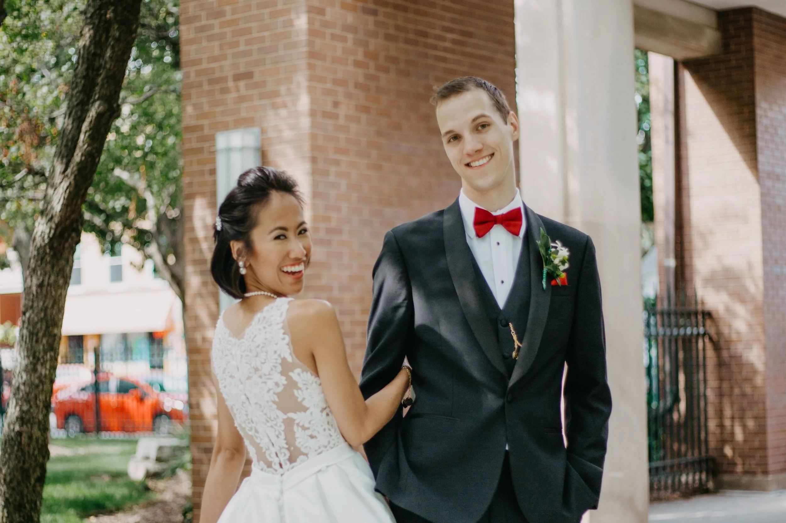 Celebrating our wedding at Holy Name Cathedral.